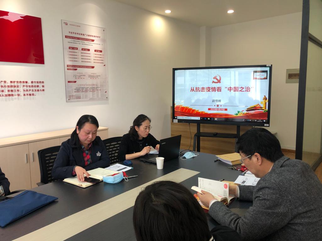 党委中心组学习(扩大)会特邀党校专职副校长、党委组织部副部长周雪晖作题为《从抗击疫情看“中国之治”》的专题报告。周部长从疫情防控中的“中国之治”答卷、疫情防控中对“中国之治”的再思考等方面,深入浅出地阐述了中国国家治理的制度优势。