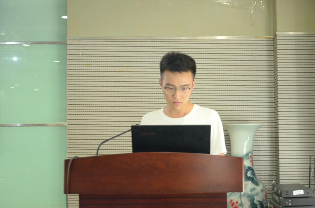 纺织服装学院院长助理袁久刚副教授主持开场。首先是内蒙古工业大学王聪同学讲述了Mechanical Properties Improvement of Nanoclay Addition Epoxy 3D Orthogonal Woven Composite Material有关研究,介绍了相关研究背景以及目前进行的实验、机理的分析、对复合材料的静态力学性能进行测试和改进,也表示后期会进行相关动态力学性能的测试。第二位是黄瓜视频