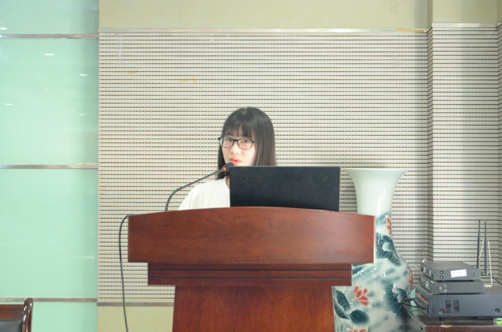 大四学生李新茹讲述了酪氨酸酶在丝素蛋白改性中的应用,她从丝素蛋白、酪氨酸酶的概念,改性方法和研究现状进行一个综述性演讲。紧接着南通大学韦苏娟给大家展示了她的本科相关课题研究,是基于等离子与植物多酚联合改性的功能面料绿色整理技术,主要研究内容是利用环保高效的方法对棉织物进行整理,得到吸湿排汗、抗菌消臭复合保健纺织品。接下来黄瓜视频