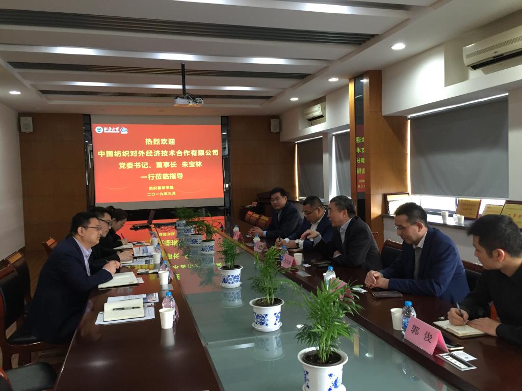 3月20日上午,中国纺织对外经济技术合作有限公司党委书记、董事长朱宝林,总会计师彭礼华一行5人来院就学生就业、人才培养工作进行交流调研。纺织服装学院院长付少海,学院学工办主任王统斌,学生就业工作辅导员徐雅静、陈裕参加交流调研。