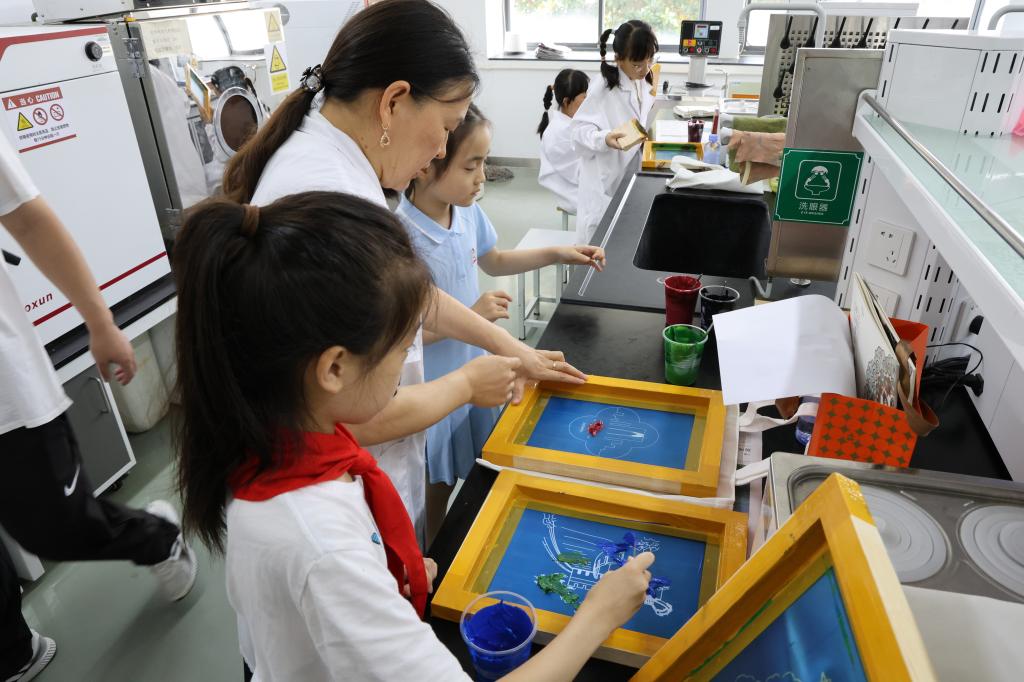 民间服饰传习馆,并亲手进行丝网印刷体验,使学生们全面了解传统服饰文化、染整加工技术,进一步学习纺织品相关知识,领略我国服饰艺术的魅力,传承和发扬服饰文化。