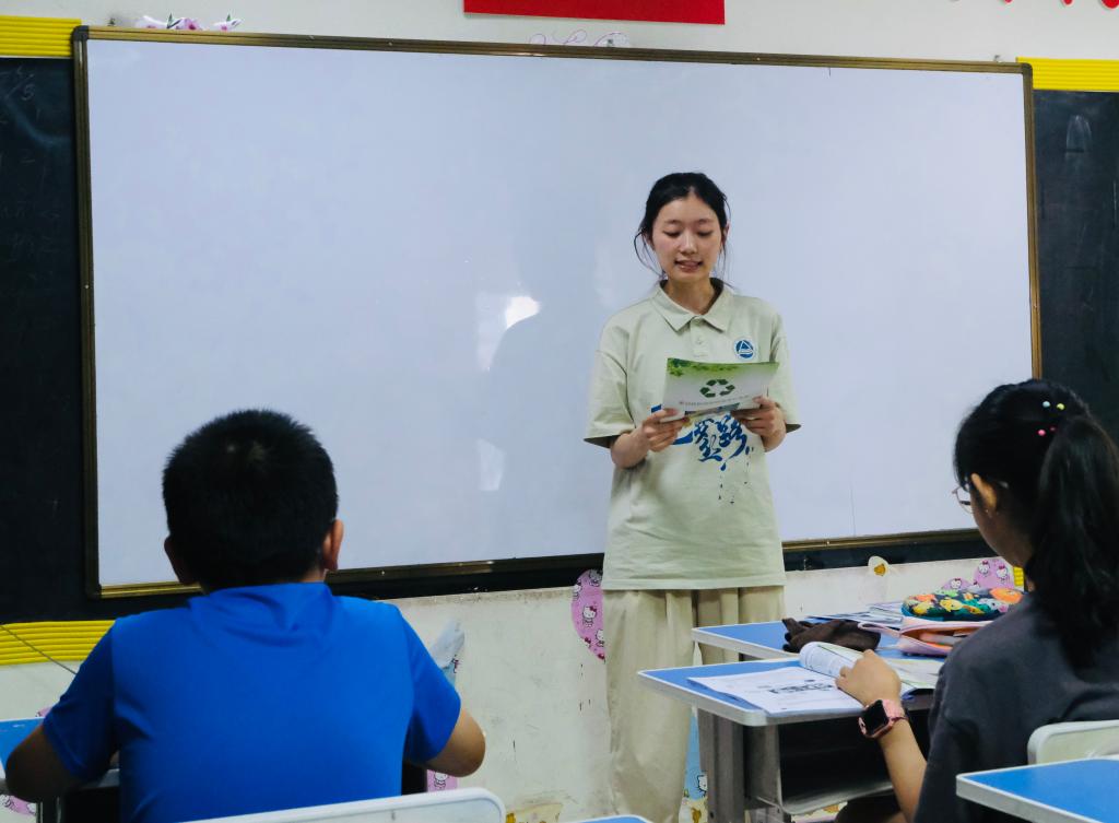 “鼋梦丝路”纺织援疆团成员进行废旧纺织品回收科普