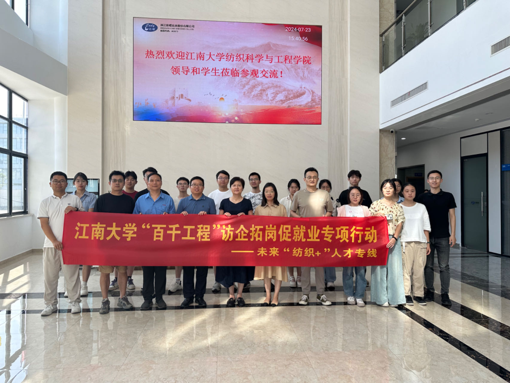 前往浙江彩蝶实业股份有限公司开展“百千工程”访企拓岗促就业专项行动。学院党委副书记、副院长杨莉勤,轻化工程系主任殷允杰,辅导员伍胤鸿、张旭及2025届毕业生代表参加活动。浙江彩蝶实业股份有限公司副总经理闻娟英、人事主任朱宏霞和销售经理董旭丽热情接待。