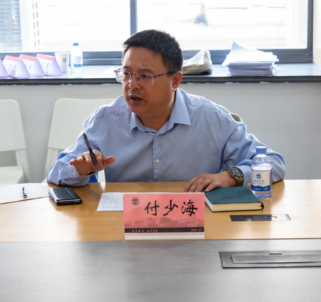 于A306会议室召开2024年研究生国家奖学金答辩会,学院党委书记张菁燕,院长付少海,党委副书记兼副院长杨莉勤,副院长马丕波,以及导师代表蒋高明、王强、殷允杰,学工办主任兼分团委书记任学敏出席本次答辩会并担任评委,2023级、2024级研究生辅导员伍胤鸿主持答辩会。