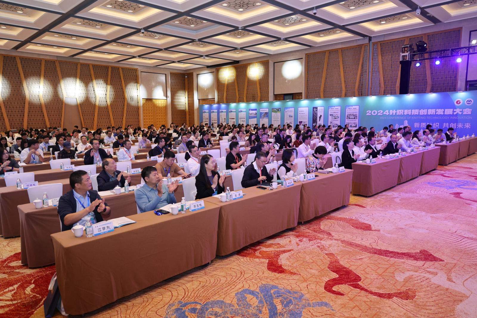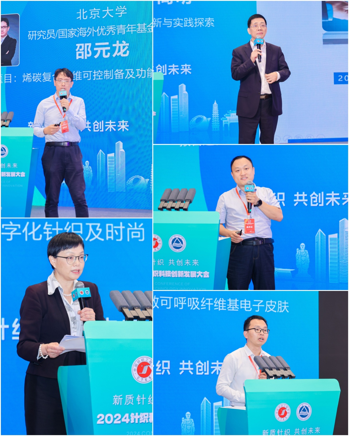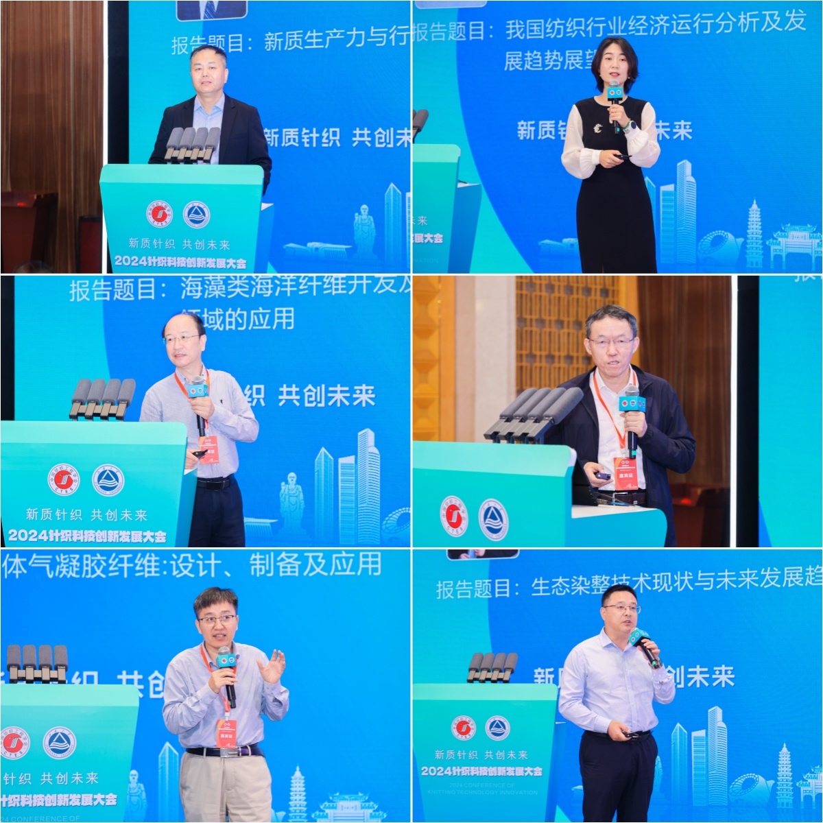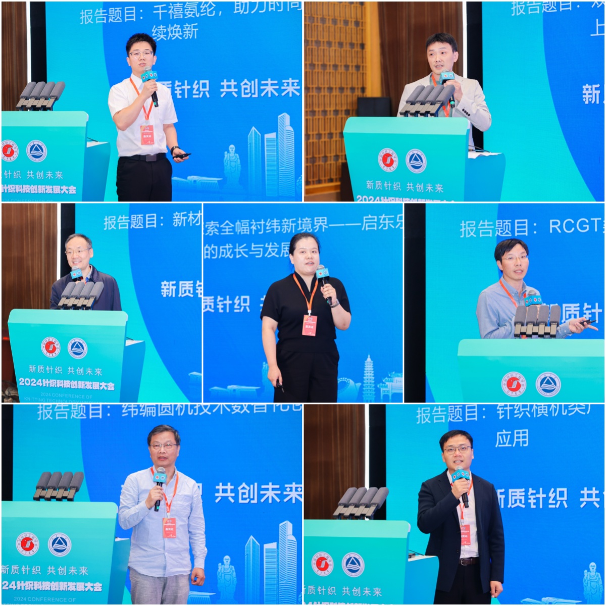 教授、中国纺织工程学会针织专业委员会主任蒋高明,东华大学教授、青年拔尖人才李召岭等分别以《新质生产力与高质量发展的几点思考》《我国纺织行业经济运行分析及发展趋势展望》《海藻类海洋纤维开发及在针织领域的应用》《新质生产力引领纺织智能制造高质量发展的体会》《胶体气凝胶纤维:设计、制备及应用》《纺织品生态染整技术研究现状与发展趋势》《烯碳增强纤维可控制备及功能化应用》《Machine Knitting for Fashion –A Focus on 3D/Whole Garment Knitting》《针织技术创新与实践探索》《高灵敏可呼吸纤维基电子皮肤》为题作行业发展思考报告和前沿领域研究分享。华峰化学股份有限公司,福建佶龙机械科技股份有限公司,安徽吴方机电科技有限公司,启东乐欣纺织科技有限公司,无锡市兴盛新材料科技有限公司,圣东尼针织机器有限公司,江苏金龙科技股份有限公司代表分别以《千禧氨纶,助力时尚产业可持续焕新》《双针床贾卡经编机在鞋面及服装上的应用和趋势》《新材料在织针上的应用及发展》《探索全幅衬纬新境界——启东乐欣的成长与发展》《RCGT柔软超高弹纤维》《纬编圆机技术数智化创新及其产品》《针织横机类产品发展趋势及创新应用》等为题,分享了公司的创新产品及应用案例。