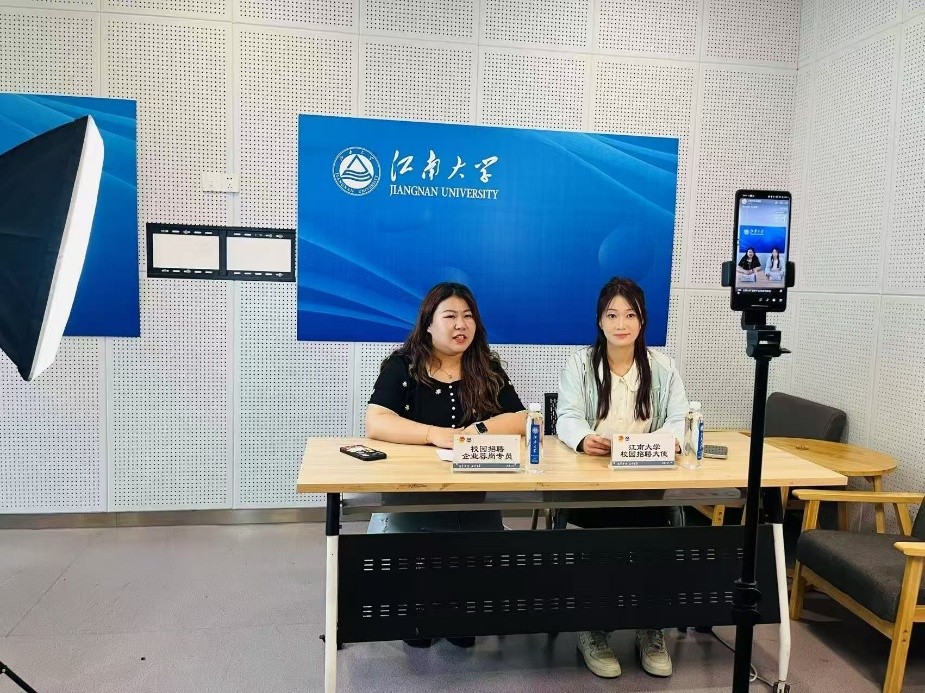 招聘会还同步举办了“送岗直通车”直播荐岗活动,无锡一棉纺织集团有限公司、江苏国泰华盛实业有限公司、苏州正雄企业发展有限公司、 塔里木大学和浙江彩蝶实业股份有限公司等5家单位校园招聘负责人,通过直播荐岗平台进行了线上直播荐岗,进一步破除场域和时间限制,让更多师生深入了解企业和岗位。