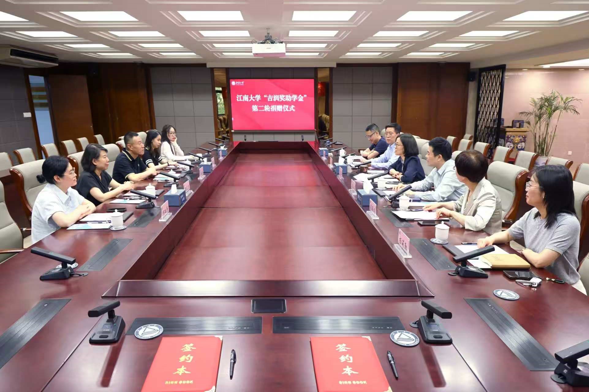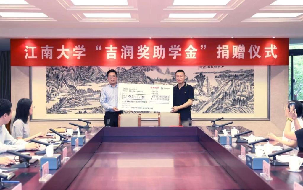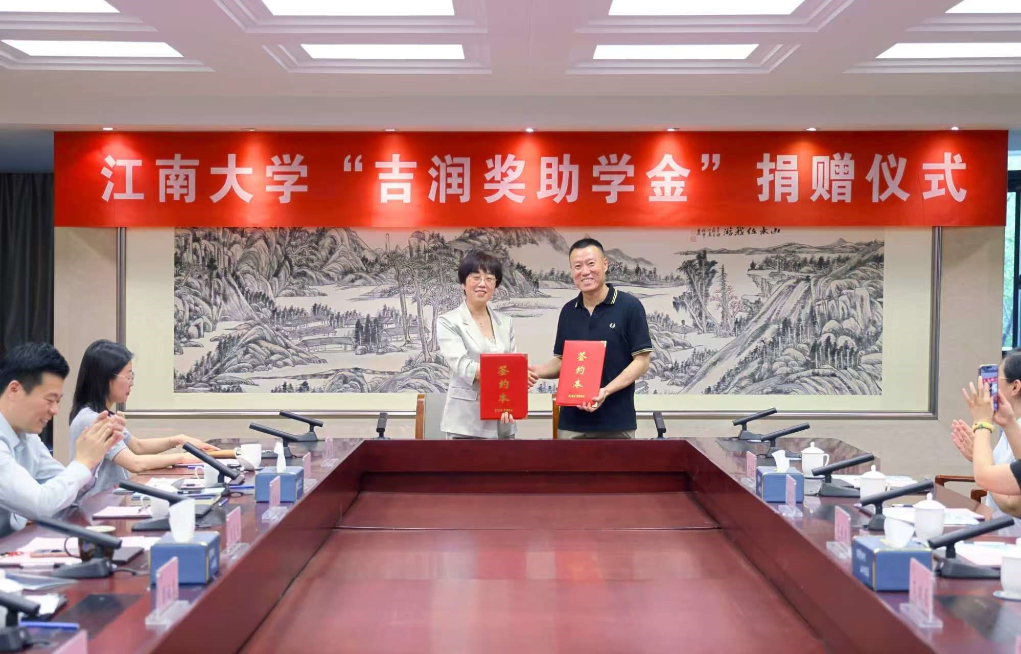 与无锡市吉润国际贸易有限公司在行政楼B305会议室举行第二轮“吉润奖助学金”捐赠签约仪式。无锡市吉润国际贸易国际有限公司董事长范恒明、副董事长范晓雁携企业代表,黄瓜视频