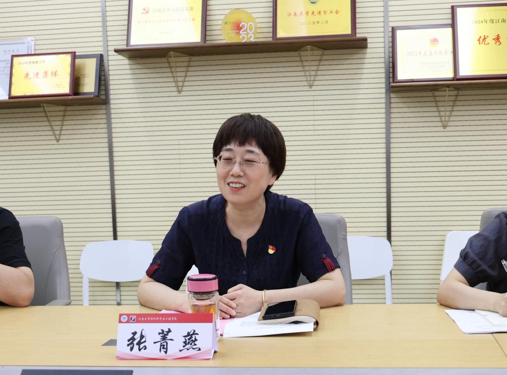 (国际丝绸学院)党委书记苏淼、院长于斌一行莅临学院调研交流,学院全体在校班子成员接待了来访嘉宾,党委书记张菁燕致欢迎辞并主持了联学交流座谈会。