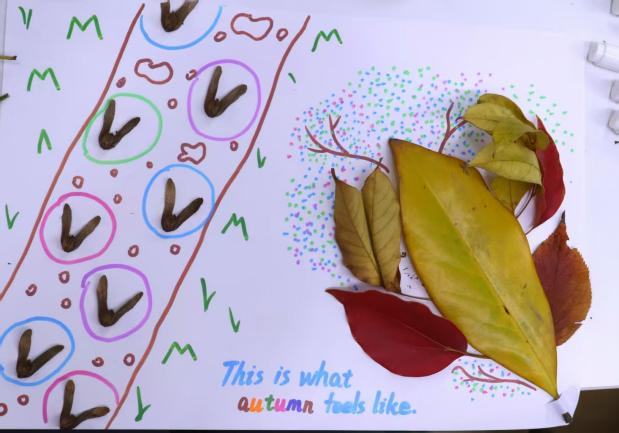 “一叶承风信,一拓留秋痕;庭前叶簌簌,心底意沉沉。”在“落叶素材库”的缤纷叶片间,银杏如金扇、梧桐似掌笺,枫红点缀其间。同学们拾起叶片,或用细笔在脉络间题下短句,或勾勒简笔小景,墨色与叶的肌理相融;有的拓印叶脉,墨痕深浅间藏着巧思,有的点缀干花碎叶,让层次更显灵动。阳光洒下,叶片上的字迹、纹样在光影中流转,每幅作品都独一无二,无需苛求叶片完美,自然褶皱与真挚创作相融,尽是独属于秋日的细腻感悟。