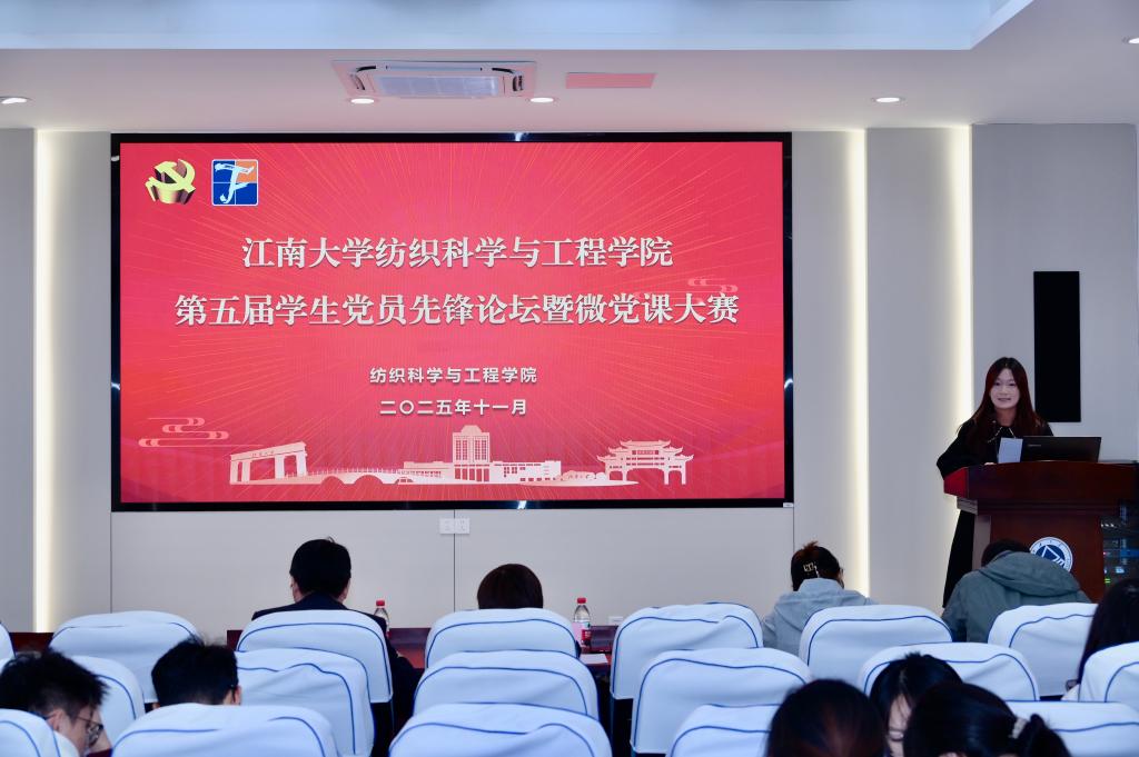 论坛以“江南纺织精神寻访”为主线,融合“支部书记讲党课”特色,引导学生党员讲述身边故事、传承红色基因、弘扬纺织精神。在微党课大赛环节,参赛选手们紧扣纺织学科特色,从黄道婆的技艺革新到钱之光的产业报国,从第一台国产纺织机到登上月球的五星红旗,通过一个个生动的“纺织物语”,诠释了纺织人“春蚕吐丝”的奉献精神和“织造锦绣”的创新追求。参赛选手围绕初心使命、青春担当、行业发展等主题,结合学科特色与个人实践,呈现了一系列主题鲜明、形式新颖的微党课,充分展现了学生党员的理论素养与先锋风采。