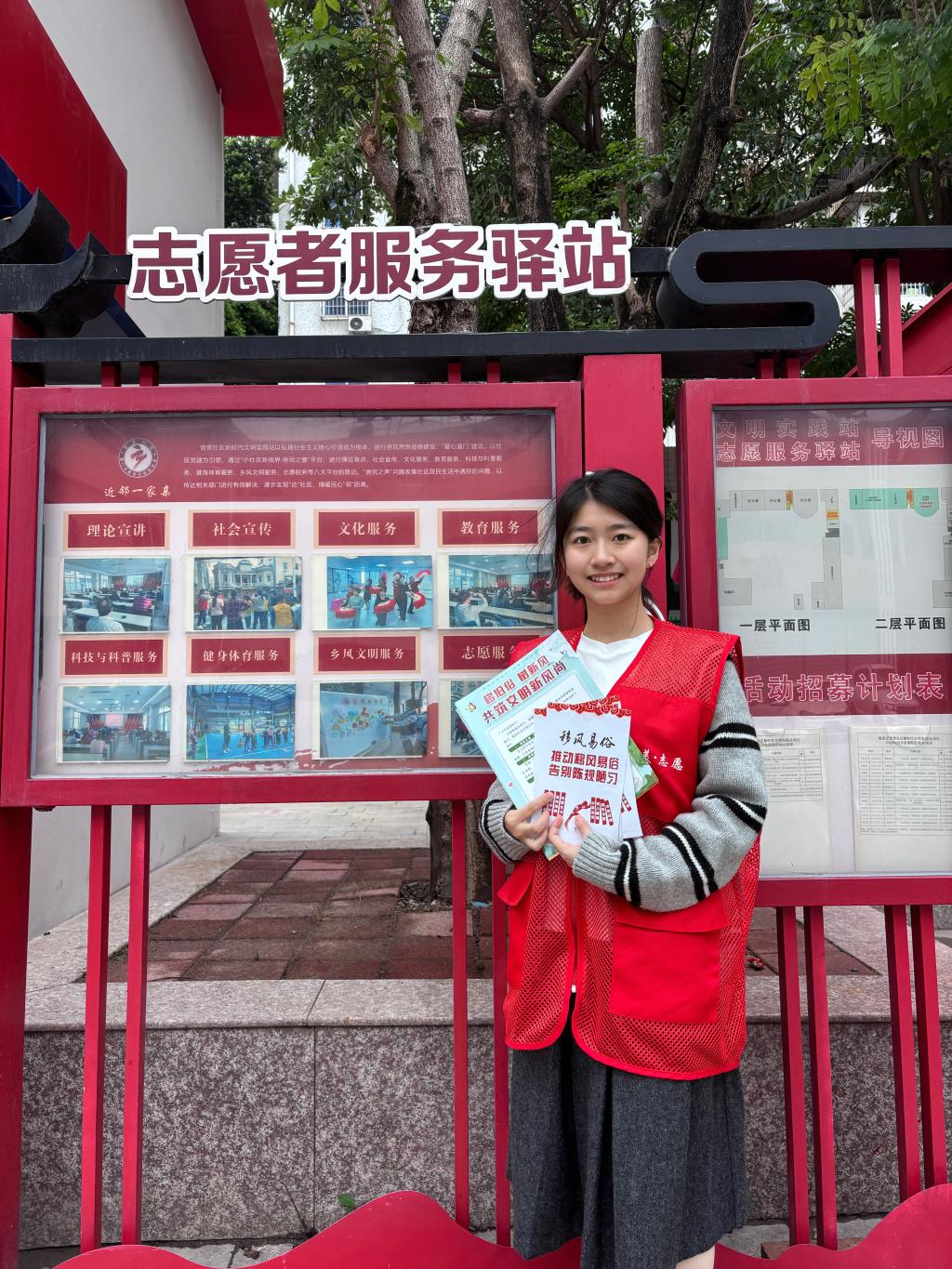 邱亦欣同学深入社区一线,依托党群服务中心、志愿服务驿站开展文明宣传,累计发放移风易俗宣传资料100余份。除此之外,她积极参与社区服务,在实践中熟悉基层治理运行机制,不仅将文明新风传递到社区角落,更在实践历练中有效提升自身的服务能力,厚植责任意识与奉献精神。