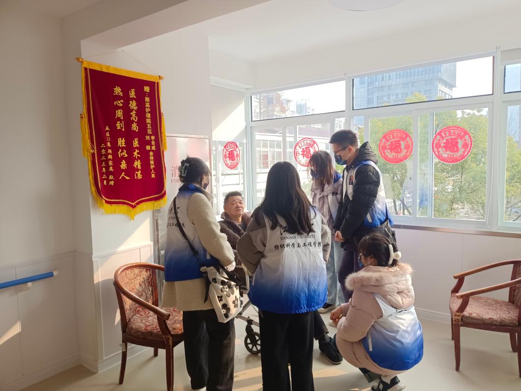 与老人欢乐畅谈、共同分享快乐的时光总是短暂的,到了与老人分别的时间,不仅志愿者们感到依依不舍,老人们也挥着手目送志愿者离开。时光虽然短暂,但我们相信,此间欢声笑语将留存于老人与志愿者的心间,久久不散。本次养老院之行,不仅增强了同学们的社会责任感和助人为乐的奉献精神,更为养老院的老人们带来了关爱与温暖,志愿者们用自己的实际行动践行了中华民族尊老敬老的传统美德。