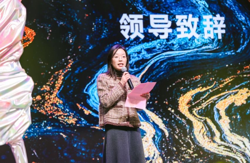 晚会伊始,杨莉勤代表学院致辞,她首先对2024级新生表示热烈欢迎并向所有心系学院发展的教职工致以真挚的祝福;随后从学科建设、人才培养、教学科研、亮点工作等方面回顾了学院一年来取得的优异成绩,并寄语全体新生要勇于面对挑战、敢于发展创新,以江大纺织人的初心和勇气,发奋图强、力争上游,用奋斗和坚持继续谱写纺院的绚丽华章