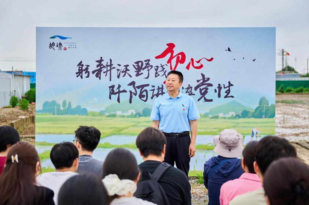 签约仪式后,党课从会议室搬至田间地头,党员们聆听了一场别开生面的思政课。谢翠林带领30余位党员深入学习领会中央八项规定精神,系统阐释了中央八项规定在加强作风建设、密切联系群众、推动全面从严治党中的重要意义,告诫广大党员同志在以后的学习工作中要积极推进作风建设常态化长效化,以优良作风凝心聚力、干事创业。随后,胡埭村党总支书记杭群民结合胡埭村生态农业发展规划,从“一株苗”的绿色种植讲到乡村振兴的作风要求,将生态文明理念融入党性教育之中,告诫党员同志们“秧苗新绿映初心,作风建设要像这插秧般脚踏实地”。